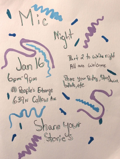 Jan 16th 6pm-9pm @ People's Exchange 639 N Callow Ave